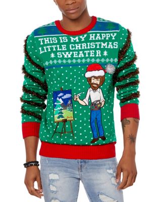 Light-Up Bob Ross Happy Little Christmas Ugly Christmas Sweater – Spencer's