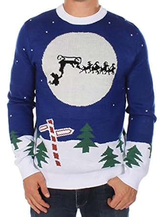 Original and fun Mens Ugly Christmas Sweaters with Reindeers, Santa and Christmas Trees.